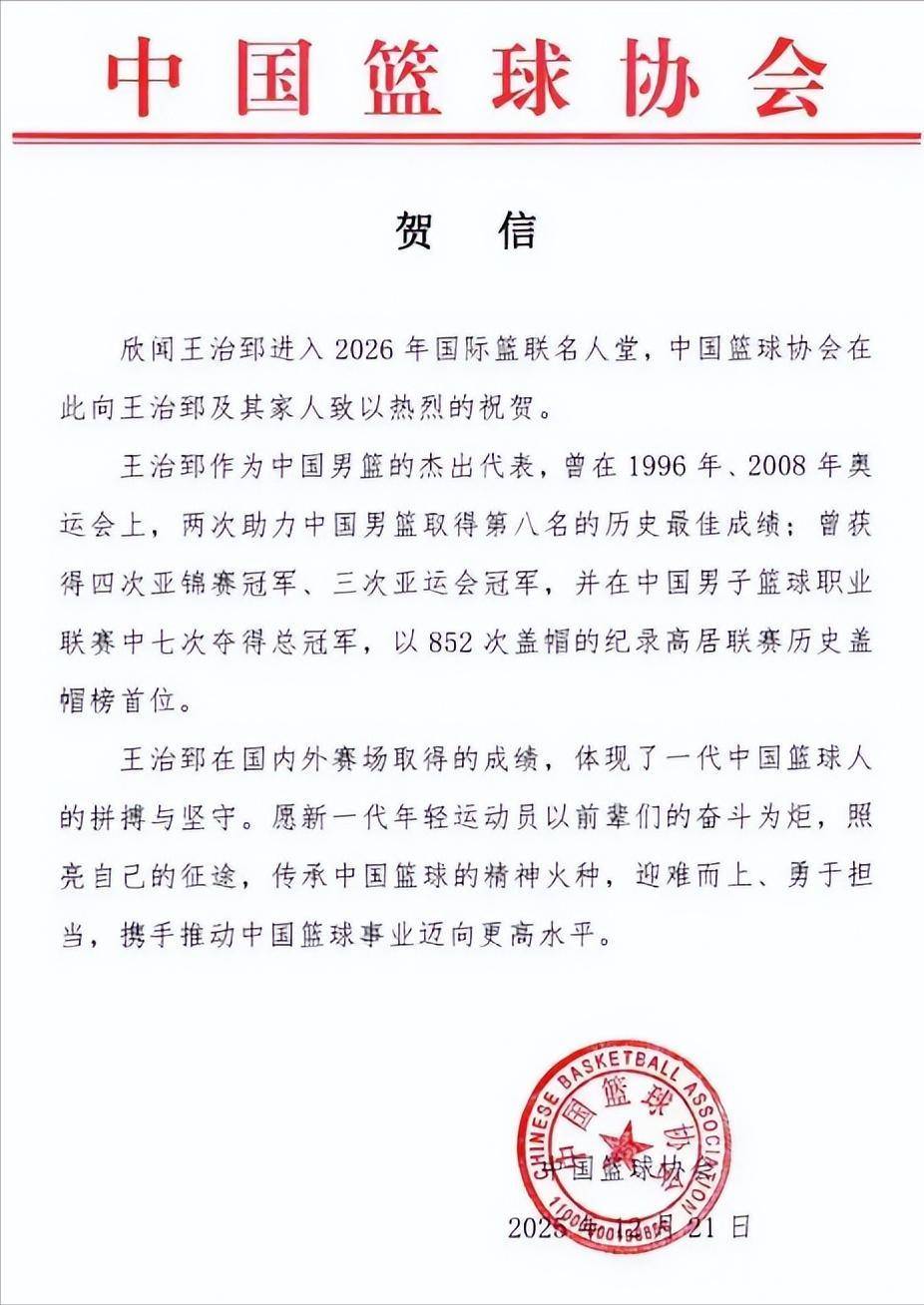 前言 12月21日,国际篮联公布了2026年名人堂的名单。 48岁的王治郅赫然在列,与诺维茨基并肩,成为了第五位入选的中国人。 奇怪的是,一向喧闹的中国篮球圈却出奇地安静。为何全场沉默?这迟来的掌声究竟有多重? 那年达拉斯的夏天 这份名单里,每一个名字都重若千钧,德国战车诺维茨基、美国女篮传奇苏·伯德,当然还有我们的王治郅。 这不仅仅是一份荣誉名单,更像是一份迟到多年的历史判决书,中国篮协的贺信发得很及时,字里行间透着一股子庄重劲儿。 这让人想起,当年那个被称为“追风少年”的大个子,终于在国际殿堂里坐稳了位置,回想他的职业生涯,那是一串串耀眼的数字在闪光。 CBA历史第一的852次盖帽,七座总冠军奖杯,还有首位登陆NBA的中国球员身份,这些数据冷冰冰地摆在那里,却比任何赞美都更有力量。 可在这一刻,面对这样的盛誉,大家没有欢呼,也没有刷屏,很多人只是盯着那张名单发呆,仿佛在透过名字,看着一段被尘封的往事。 这种沉默很罕见,也很耐人寻味,它不像是在庆祝,倒像是在进行一场无声的悼念,又像是一次迟来的集体忏悔,王治郅这个名字,早已超越了一个篮球运动员的范畴。