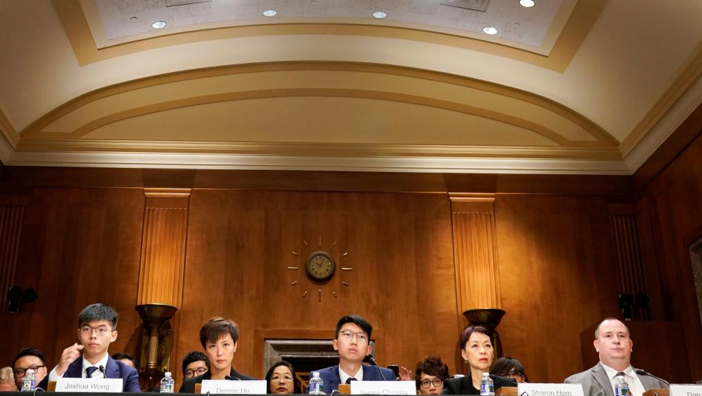 香港青年领袖黄之峰、歌手何韵诗等17日出席美国国会听证会。 路透社