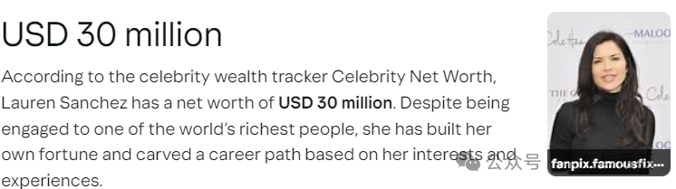 这些内容细化成条款,看都看不完,贝索斯算计得这么清楚,干嘛还要结婚? 律师Dain Dreye解释,其实这份协议不但保护财产,也是双方价值观的认同,还是一条条说清楚更好。 网友喷得更直接,这俩都比猴还精:“婚前协议、奢华婚礼、好莱坞朋友圈、整容狂人,两个婚内出轨者都赚大发了......三观一样,哪有什么问题。” 还是那句话:不是一家人,不进一家门。桑姐能走到这一步,想得比谁都清楚↓↓ 贝索斯上次离婚没伤筋动骨,而且越来越赚。福布斯统计,截至6月10日,他的净资产2312亿美元,世界第三↓↓ 他是亚马逊最大的单一股东,拥有约10%股份,比先锋集团、贝莱德基金和SSgA基金公司这些机构投资者更多。 亚马逊不但卖货,而且是流媒体服务公司,给40多个国家包括Airbnb、宝马、ESPN、Expedia、麦当劳、Yelp等大型网站和数十万小网站服务。 亚马逊Prime Video势头很猛,独家转播橄榄球等赛事,独家收购米高梅全部影视剧,詹姆斯·邦德系列、《洛奇》、《沉默的羔羊》和《律政俏佳人》等大片。 旗下还拥有亚马逊货运航空、服装系列、全食超市。 算下来,他的资产只有华盛顿邮报亏损,可能考虑到打舆论战,亏了多年都没卖↓↓ 除了商业帝国,贝索斯的房地产投资超过5亿美元,是美国第25大地主。 最值钱的是比佛利山庄10英亩豪宅,价值1.65亿美元,从制片人大卫·格芬手里买下↓↓ 他在曼哈顿有5套豪宅。最贵的在第五大道212号大楼,他买下最高五层,翻修成大型顶层公寓,正对麦迪逊广场公园↓↓ 桑切斯也是富姐,净资产3000万美元,自己的生意做得很大。 桑姐喜欢飞行,出身体育新闻主播,创立了一家制作航拍视频的黑色行动航空公司Black Ops Aviation,拥有两架直升机和一架单引擎飞机,公司估值至少两千万美元↓↓ 桑姐的能量不得不服,手里都是大客户,包括美国广播公司、加拿大探索频道、索尼、Netflix、Extra和老贝的蓝色起源航天公司。 她搭上贝索斯,就是因为老贝聘请她给蓝色起源拍摄视频。桑姐教他克服了对飞行的恐惧,老贝越飞越自信,一大把年纪超越自我,不擦出火花才怪↓↓ 桑姐在上一段婚姻也赚到了。她的前夫是好莱坞明星经纪人Patrick Whitesell,身家3亿美元,14年婚姻有一子一女。 两人2017年花620万美元在华盛顿买下7000平方英尺豪宅,一年后,桑姐出轨贝索斯。 2019年离婚,其他共同财产归前夫,华盛顿的豪宅转到桑姐名下↓↓ 桑姐拿到前夫的豪宅 桑姐跟老贝在一起6年,不光整容健身,她搞钱从没闲着的,已经拥有很多共同财产。 珠宝包包不用说了。2021年,在夏威夷购买14英亩海滨度假村,价值7800万美元↓↓ 5亿美元超级游艇Koru,上面有桑姐的雕像,是贝索斯的礼物。这是世界上最高帆船,玩这艘船还要订购专属支援船、快艇,用来停直升机,接驳客人和服务人员↓↓ 更猛的是,桑姐把自己打造成女性公益事业领头人。 她是贝索斯地球基金会的联合主席,贝索斯给西雅图癌症中心捐了7.1亿美元,桑切斯给拉丁裔女星伊娃·朗格莉亚的教育基金会捐款5000万,给女歌星多莉·帕顿的慈善机构捐款1亿美元↓↓ 桑姐签订婚前协议,自己的生意飙升,还说好怎么分割共同财产,哪怕一拍两散,投资和人脉不会白费↓↓ 这俩的婚礼是今年顶级,预计花费1000万美元,威尼斯的五家豪华酒店和刚朵拉全被包下。 除了花钱,还得有点品味。将在700年历史的慈善教堂走红毯↓↓ 这座建筑建于1310年,代表“七大兄弟会”,当时上流社会的七个慈善和宗教机构。 由文艺复兴时期艺术家装饰,在音乐和建筑史上都很有名。无论从地位还是文化,都对得上前首富的胃口↓↓ 谁也没想到贝索斯这把年纪还能走进婚姻,这俩精明又现实,一个搞了商业合同式的婚前协议,另一个搞生意搞投资,不会闲着。耶!都有光明的未来~ |