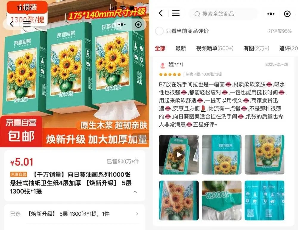 除了告别用低价换流量、与电商平台共赢共建供应链之外,京喜自营模式还给白牌商家留出了合理的利润空间。这部分利润除了合理定价和供应链优势外,还来自京喜自营会全面接管选品、运营、客服、营销、物流以及售前售后服务等环节,商家由此节省下来的推广成本可直接转化为企业研发和质量保障投入。 徐卫国表示有了这部分利润,白牌纸企可以做更多的技术研发,“我们现阶段正在集中力量开发消费者反馈需要的更厚实、更柔软、湿水不易破的新品”。 维邦的 “逆势探索” 并非个例,徐卫国看到今年开始,西南生活用纸产业带中,有越来越多的白牌商家选择入驻京喜,不少已拿到成绩。 京喜自营这种“源头直采+深度供应链协同+价值导向流量分发”的模式,为深陷价格战的白牌商家提供了一条差异化路径,让厂商能专注于产品本身,凭借品质和真实解决用户痛点来赢得市场,而非在无休止的内卷中消耗殆尽。 结尾 经过这次纸巾的惊魂消费,老吴再点开电商平台的抽纸页面时,不再仅盯着那行醒目的价格数字,而是仔细翻看商品详情页,原生木浆含量、有无FDA食品级认证,甚至包装是否采用可降解材料,都成了他关注的重点,而老吴的改变代表着中国更多生活用纸消费者的安全意识觉醒。 与此同时,生活用纸也迎来产业升级,单纯依靠低价噱头和互联网促销的时代正在成为过去,未来真正能赢得市场的是基于供应链深度改造和持续的产品创新,切实解决了消费者痛点的质价比产品。 生活用纸,这个日常不可或缺的品类,终于开始回归其本质:安全、舒适、可靠。 |