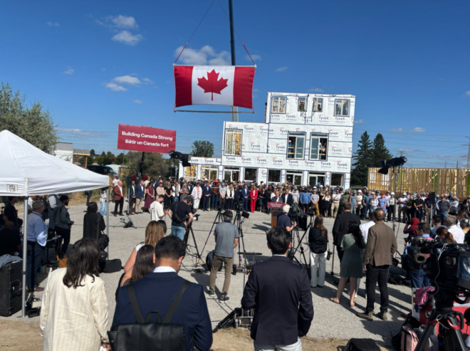 一切都是为了拍照,为了“作秀”! 据多伦多太阳报11月26日报道,最新公开的文件证实,总理马克·卡尼9月14日举行新闻发布会、宣布成立新的联邦住房机构时所站的那个“建筑工地”,其实完全就是一个精心搭建、而且不便宜的临时布景。 从发布会的现场图片来看,那栋似乎正在修建的建筑,确实有点突兀,周围并没有其他工地。 在回应保守党议员Arnold Viersen提出的书面质询时——他问是谁“决定临时搭建那些没完工的样板房当发布会背景”——枢密院办公室(PCO)承认,那全是布置出来的,并形容是由渥太华模块化房屋建造商Caivan Homes做的一场“示范”。 准备运往北极的房屋、来自渥太华的布景 “这些房屋后来已经拆掉,其中那栋给努纳武特的房子,现在正被运往加拿大北极,用来安置一个有需要的家庭。”PCO的回复写道。 “同样地,那些叠放式联排屋正在为渥太华东部的一个项目重新组装。” PCO还表示,那块地是联邦政府所有,是“一个可以用来做住房开发的联邦土地例子”。 不过,这些细节,无论是卡尼还是住房部长罗品信(Gregor Robertson),在发布会当天都完全没提。当时他们宣布的是Build Canada Homes(BCH),由前多伦多市议员Ana Bailao领导的新联邦住房机构。