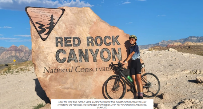 图源:Li Jiang via healthing.ca 当66岁的容斯玛在早晨药效未起时跪着在屋里爬行时,35岁的江莉不会惊讶;而当江莉因为年轻型帕金森出现无缘由的哭泣症状时,容斯玛也不会评判。 两人在今年8月的一次跨省帕金森骑行活动中认识。那次骑行横跨不列颠哥伦比亚省和阿尔伯塔省,超过2000公里。一路上,她们得知彼此即将住在同一座城市。江莉秋天要回校,在麦克马斯特大学攻读“综合康复与人文”专业;而容斯玛在汉密尔顿的家里正好有一个空房间。“这完全是巧合。”容斯玛说。 自从建立起这段情谊,她们鼓励彼此以真实的自己生活,而不是活在被轻视、被同情、被评判的恐惧里。她们说,独居或是与仅仅知道你有帕金森的室友同住,都比不上这种天然理解带来的安心。 容斯玛在2018年被确诊,那时她已五十多岁。她的右手手指已经无法点击鼠标,她换左手操作一年后,右臂又开始麻木并出现震颤。诊断带来的震惊最终变成悲伤,她哀悼着自己原本设想的退休生活,并长期深感孤独。 “我那时觉得前路完全没有了,我以为我的人生结束了。”容斯玛说。 后来,她们都发现运动能缓解症状——游泳、徒步、太极、舞蹈课程,还有骑行,而正是在骑行里,她们遇见了彼此。 “你会意识到,这段旅程里你并不孤单,我们一起面对。”布鲁诺说,能走到这一步并不容易。“有人愿意倾听、愿意理解,那种力量是无限的。” 更多帕金森女性可能隐藏了自己的症状 帕金森病是一种进行性运动障碍,会导致大脑中的神经细胞逐渐减弱、受损、死亡,从而引起震颤、僵硬,以及在平衡、行走和说话方面的困难。