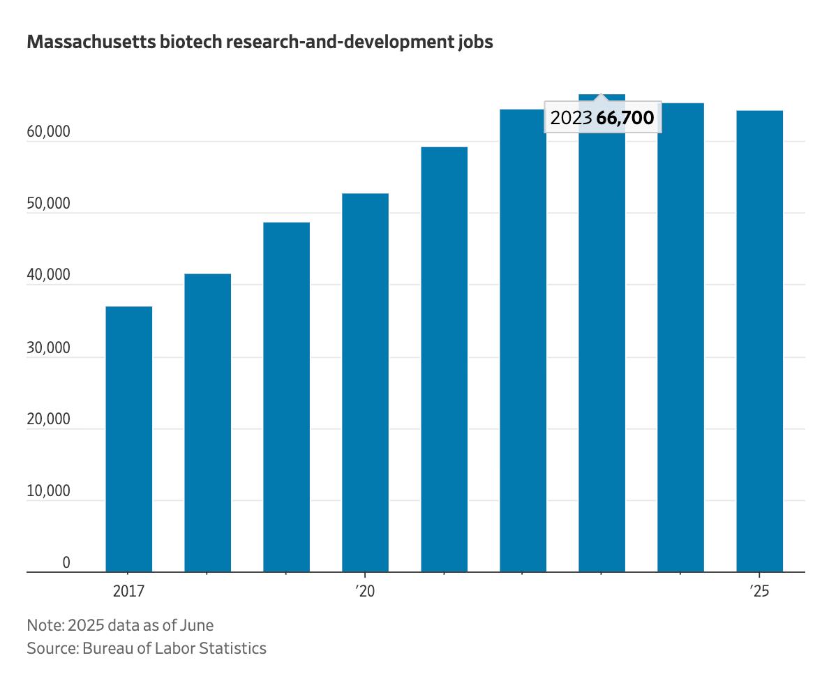 美国波士顿高学历者的噩梦正在上演!据《华尔街日报》爆炸性报道,昔日被誉为“黄金职业通道”的波士顿生物科技产业,如今竟陷入了前所未有的萧条。高薪岗位不见踪影,空荡荡的实验室里只剩失业博士的惊恐与绝望,一切都快失控了! 镜头拉回2018年,31岁的Jeremy Liew(杰里米·廖)满怀憧憬,从新泽西搬到波士顿攻读化学博士。他原以为能顺利冲进这座城市炙手可热的生物科技圈,结果却遭遇暴击——拿到马萨诸塞大学波士顿分校(University of Massachusetts, Boston)博士学位后,他疯狂投递了约500份本地职位,竟然没有一个录用!“大家都劝我去中国试试,那里的生物科技真的在爆发,”Liew苦涩地说,甚至开始关注来自更远地区的LinkedIn(领英)猎头消息。 波士顿的生物科技产业,这一美国最富裕都市群的经济引擎,突然熄火!风投和政府资金的双重收缩带来毁灭性打击——裁员接踵而至,求职者四处碰壁。 Liew甚至不得不靠政府食品援助勉强度日,极度节省开销,后来只能在一家人工智能创业公司兼职,才能勉强负担波士顿郊区的房租。这种高学历却沦为“打零工”的现实,让人咋舌。 马萨诸塞州的生物科技研发岗位在2024年首次出现下滑,约6.5万个岗位骤减,结束了疫情期间的增长神话。官方数据显示,裁员潮持续至6月,招聘如同陷入死寂。