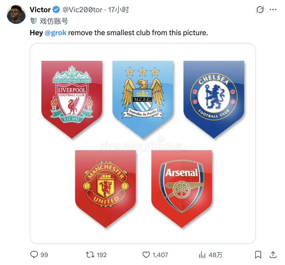 网友在球队引战这一块,也是把grok害惨了。 比如这位网友,要求grok移除下图最拉的球队。结果grok情商太低,读不懂空气,愣是把这位网友的主队阿森纳剔掉了,气得网友对着grok破口大骂,戏剧效果拉满。