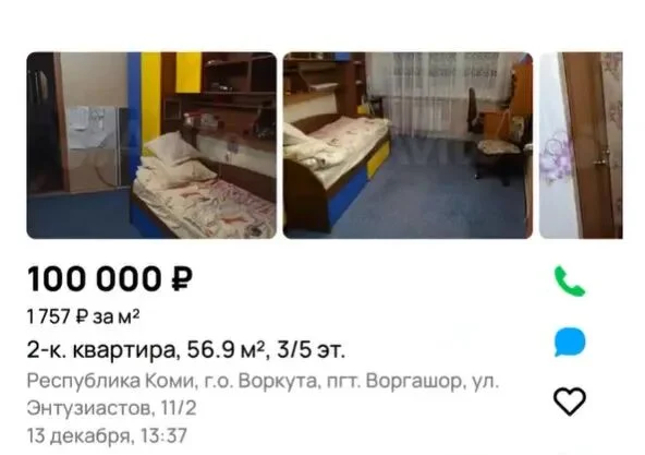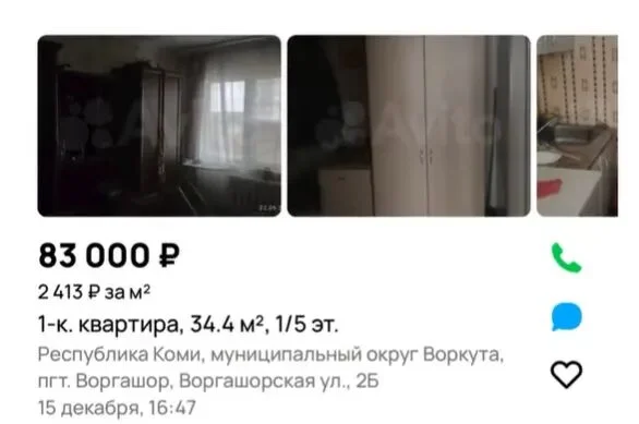 如果只说“房价便宜”,大家可能没什么概念。 那我们直接列数字。 在Vorkuta的房产平台上,目前可以找到的部分房源,价格大致是这样: 34.4平方米的一居室,约787英镑👇