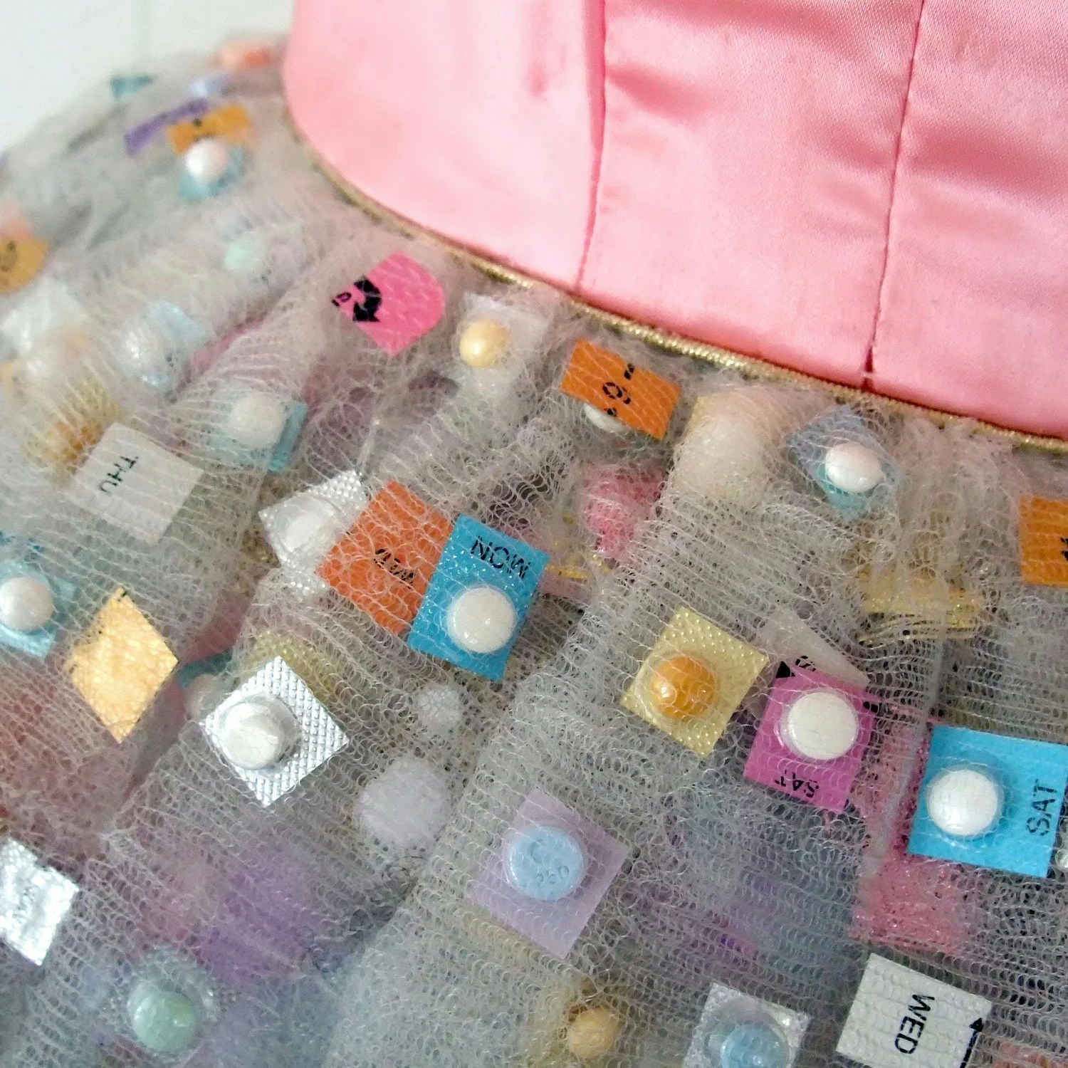 | 以为是镶嵌钻石的婚纱 走近看竟是6279颗避孕药 | |