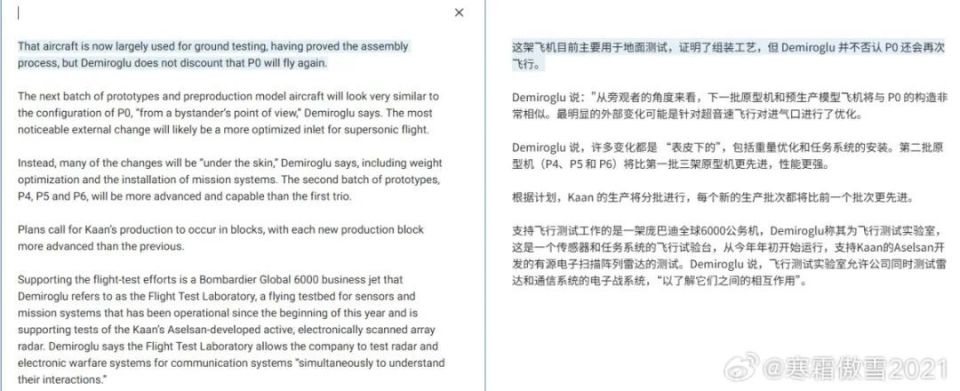 1.土🐔承认3年只试飞2次的KAAN首飞机是P0地面展示机改装的,只用于验证组装工艺(P0无静力测试机强行试飞,被迫用加强件修改座舱盖和前起落架)。2.正在组装的P1机在模具里,原计划2025年年底试飞,已经被推迟到2026年试飞。第一批次原型机为P1、P2、P3、尺寸相比P0大改例如机高降低1米、机长缩短0.7米、翼展缩小0.6米(估算大致缩小到J20的尺寸)。P1能飞、P2、P3都不能飞。第二批次原型机是P4、P5、P6据称比第一批改良蒙皮和任务系统、超音速进气道优化,下线时间未知。3.土官员德米罗格鲁声称将用一架庞巴迪环球6000商务机测试KAAN的AESA雷达(侧面证明目前MURAD600未进行飞行测试、只飞2次的P0雷达罩涂漆但里面是配重)。4.KAAN在2028年用F110GE129服役、2029年乐观估计用KAAN单发安装F110单发安装TF35000服役,35000代表该发动机设计指标35000磅略低于F119的37000磅,TEI总经理声称TF35000水平世界前三、进度比外界预测快得多。⭐️本博发现TEI至今无一个发动机型号的完整科研试飞到技术定型、生产定型的经验,4年内飞行台测试一个四代大推纯属智商测试题。参考刘大响老师讲座一个成熟的型号至少需要18年研发、即便数字化研制的WS19也只缩短了1/4时间。零完整发动机经验的TEI最乐观估算大概率只能完成类似WS6的作品,如果老老实实仿制F110GE129(虽然🇹🇷有F110大修线,但核心零部件美国苞米)才能达到WS9的进展,这已经打满鸡血的研发进度了,目前TEI总经理发言,纯粹的是没经历过发动机可靠性问题拷打的航发入门者的初生牛犊不怕虎状态,前景悲观。➡️图6~图10是一个退役土耳其军官关于KAAN雷达、发动机、隐形的自媒体发文,可信度较低,因为他把不少其他国家发动机的参数标准错误。➡️图11和图12证明KAAN是同类机中唯一把垂尾安装在发动机上学F14的、恰好都用F110。 ➡️图13~图15证明MMU/TFX/KAAN整机尺寸发生过三次较大变化。➡️图16~图18(图转载自Amstrong的空军之翼)证明从起落架受力点看KAAN的机身结构受力设计很可能对F15有局部参考